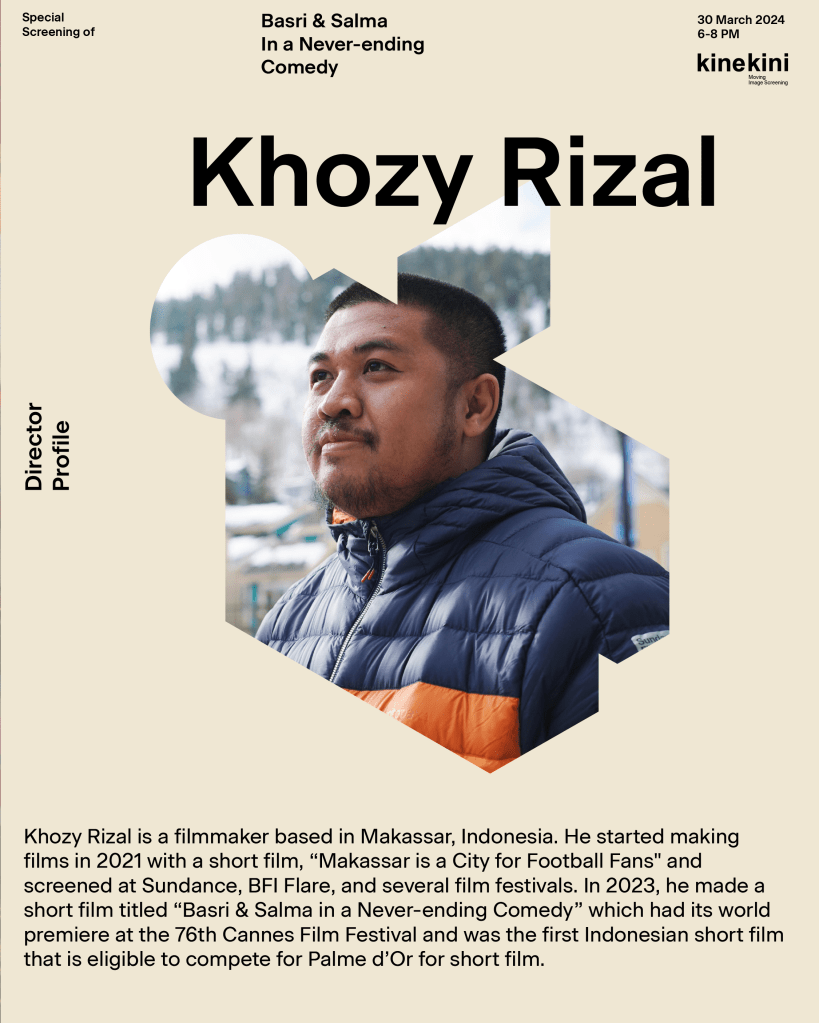 Orasis Art Space kembali menghadirkan festival film mereka yang kedua kalinya. Festival kali ini bertajuk Kinekini Moving Image Screening. Selama tiga pekan sejak tanggal 15 Maret 2024 sampai tanggal 7 April 2024, selain pemutaran film, Orasis menyuguhkan rangkaian acara lain seperti yang sudah dijelaskan di artikel sebelumnya yang membahas acara Kinekini Moving Image Screening secara keseluruhan. Acara yang akan disorot dalam artikel ini adalah Director Talks bersama Khozy Rizal yang menjadi agenda khusus untuk memperingati Hari Film Nasional pada tanggal 30 Maret 2024.