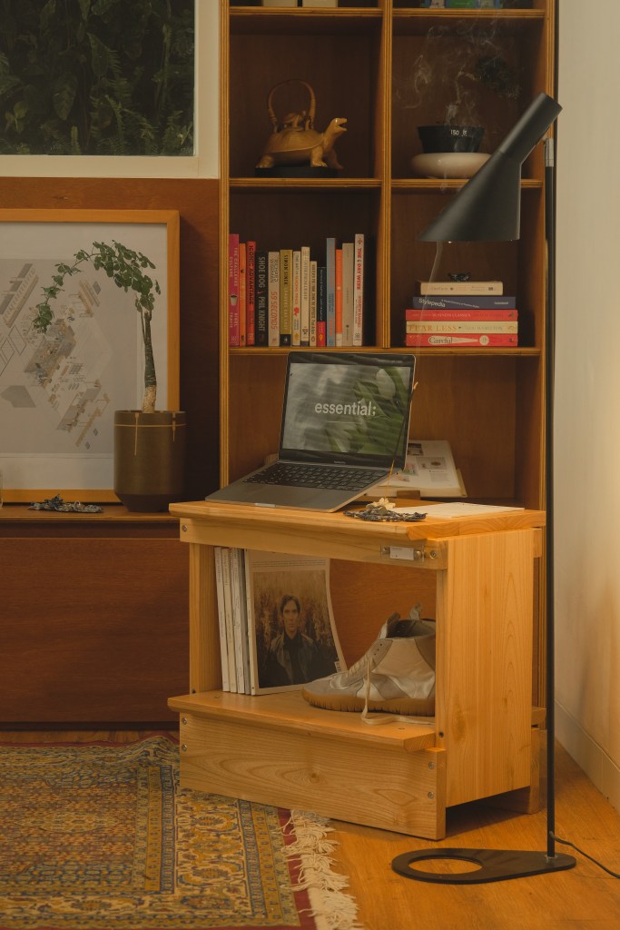 Khusus untuk pemotretan ketiga produk ini, WOF juga mendesain sebuah kabinet dengan selving system. Desain kabinet ini merupakan perpaduan craftmanship yang cermat dan desain yang elegan.
