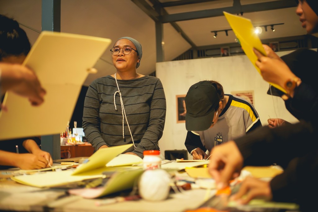 Selain pameran dan bazar yang berlangsung lebih awal dan fleksibel, agenda hari kedua dibuka dengan lokakarya penjilidan buku (book binding workshop) bersama Agnisa Wisesa. Selain menjadi dosen Program Studi Seni Visual di Universitas Negeri Malang, Agnisa juga adalah salah satu inisiator media seni lokal yaitu Malang Art Map. Lokakarya yang hanya bisa diikuti oleh lima peserta ini berlangsung menyenangkan. Selama 90 menit, para peserta mengikuti arahan dari Agnisa dengan serius, tetapi tetap antusias.