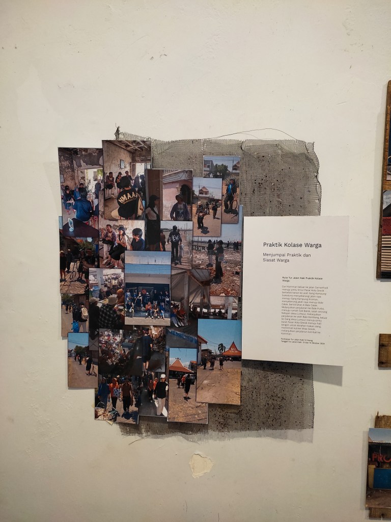 Kolase dipahami sebagai teknik seni menempelkan berbagai bahan selain cat ke atas bidang, seperti kertas, kain, kaca, logam, dan lain sebagainya. Pada konteks yang lebih spesifik, masyarakat Gresik lebih mudah memahami seni kolase sebagai teknik menempel aneka biji-bijian pada bidang kertas dengan lem yang kerap menjadi kategori perlombaan di sekolah dasar. Namun, di luar konteks estetika, seni kolase tampak semarak dalam keseharian warga kampung di Kota Gresik. Alih-alih merekatkan material dan benda-benda secara semaunya, warga lebih peduli jika laku tersebut menyebabkan objek menjadi tetap berfungsi sebagaimana mestinya untuk memperbaiki benda yang telah rusak atau menciptakan objek, sehingga dapat berfungsi, sebagai siasat menghadapi persoalan domestik atas situasi keterbatasan yang dihadapi.