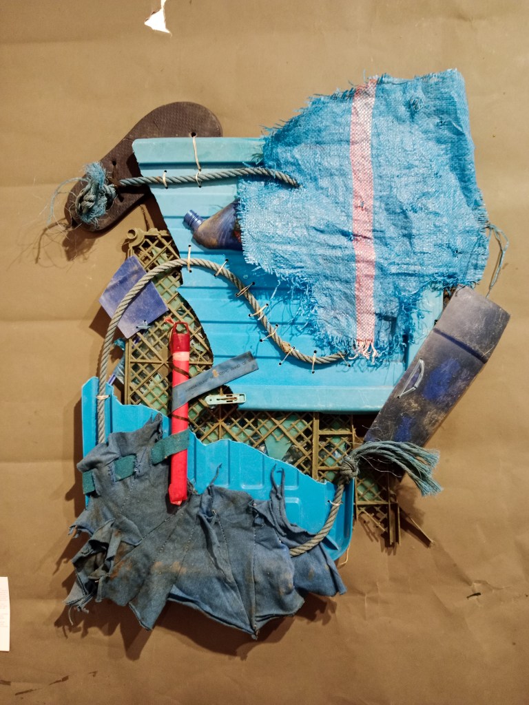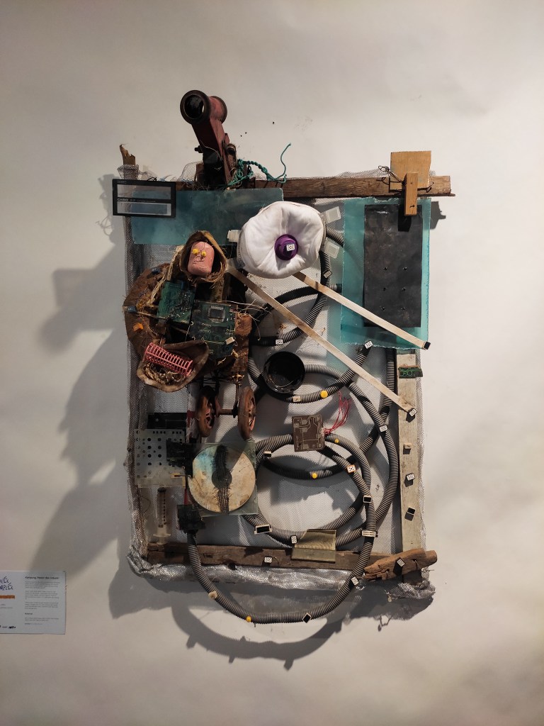 Ridho (Ahmad Ridho Pamungkas), seorang desainer grafis lepas penuh-waktu yang juga merupakan desainer Orasis Art Space saat ini membuat karya dengan judul “Kampung, Pesisir, dan Industri” yang merefleksikan kehidupan urban yang direpresentasikan oleh benda-benda temuan khas pesisir seperti kelapa kering, batok, bata, tambang, dan otoped. Selain objek khas pesisir, dalam karya ini juga tergambar kehidupan masyarakat Gresik sebagai kota industri melalui temuan fragmen-fragmen benda elektronik seperti CD, kalkulator dan selang AC.
