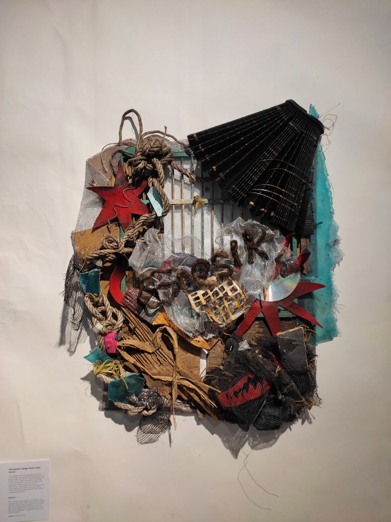 Kolajsu (M. Samsu Al Kahfi), seorang pegiat kolase dan anggota kolektif Gunting Batu Kertas melihat hidup manusia yang saling menjerat satu sama lain dari proses kekaryannya dan ia beri judul “Jerat Menjerat”.