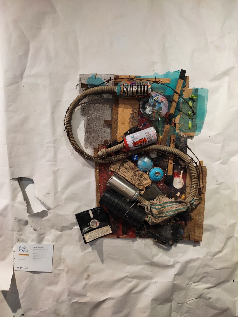 Graciella Winarni Adisarta, seniman yang memulai perjalannya melalui bidang multimedia dan saat ini sedang menempuh pendidikan di Universitas Internasional Semen Indonesia dengan program studi DKV, membuat karya berjudul “Praktik Mataku”. Karya ini mengartikan hasil pengamatan matanya akan warga Gresik yang tanpa disadari sudah mempraktikkan kolase dengan maksud dan tujuan untuk menambah nilai guna suatu barang.