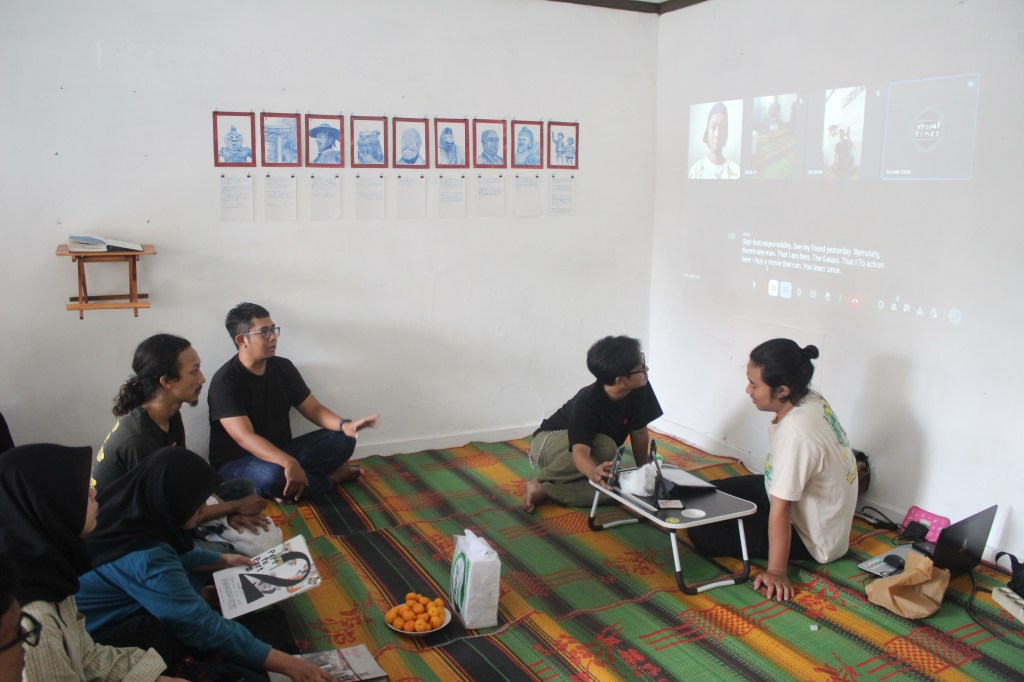 Rumah yang sederhana dan kecil, setengah ruangan tamunya dipenuhi oleh anak muda, mahasiswa, dan seniman, pada sore itu setelah hujan lebat mengguyur Driyorejo, Kota Gresik. Tepat pada hari Minggu, 24 November 2024, saya mendatangi kegiatan yang diinisiasi Kecoaktimur, kolektif seni yang tinggal di pinggiran Kota Surabaya, dalam acara Presentasi Hasil Residensi Seniman bernama Sultan Putra yang bertajuk “Roots & Rhythms” di Pos Randu 11, nama baru atau tempat yang biasa digunakan oleh mereka berbagai kegiatan dari workshop, presentasi, studio bersama, sampai menonton bioskop bersama warga sekitar. Ruang tamu tersebut disulap menjadi ruang berbagi mulai dari berbagi pengetahuan buku-buku yang tertata rapi di sebuah rak di pojok ruang, meja yang menjajakan merchandise, hingga sorotan proyektor seperti co-working space pada umumnya, tetapi bedanya ruangan ini lebih intim dengan adanya tikar tradisional dan suguhan hangat yang mereka sediakan; seperti bertamu di rumah tetangga.