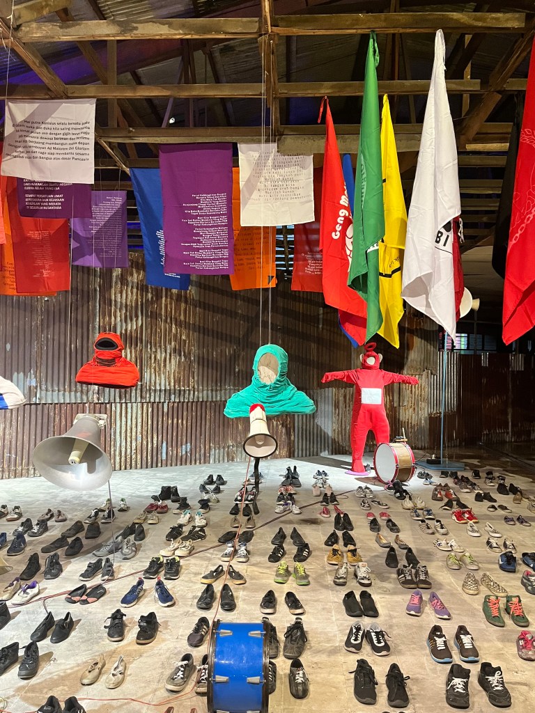 Artistically, each work resonated with me on a personal level. However, some pieces particularly moved me, giving me goosebumps because, despite narrating historical events, their themes ironically remain strikingly relevant to Indonesia’s current socio-political landscape.