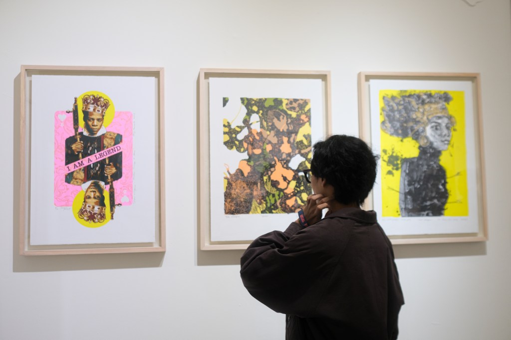 “DEVFTO adalah open printmaking studio atau studio terbuka seni cetak grafis yang tugasnya melayani semua seniman. Semoga ini bisa jadi bentuk ‘amalan’ bagi para perupa di Indonesia. Kami punya beberapa program utama, yaitu edukasi yang mengedepankan pemberdayaan seniman lokal. Ini mencakup workshop, artist in residency, serta commisioning dan admissioning—layanan yang mungkin belum banyak dikenal di disiplin ilmu lain. Untuk ARTJOG kali ini, kami mengajak 27 seniman yang masing-masing membuat satu hingga dua karya, sehingga total ada 40 karya yang ditampilkan. Konsepnya—ide dari Mas Pemad—adalah memindahkan studio grafis ke pameran. Ini bukan hal mudah bagi kami. Di ruangan kami, Anda bisa melihat ada mesin kecil, dan nantinya kami akan mengadakan sesi lokakarya. Ada teknik litografi yang masih belum populer, lalu seni cukil lino, dan seni cetak tetrapack yang memanfaatkan kemasan daur ulang sebagai acuan cetak. Untuk litografi ini memang khusus bagi seniman undangan, sedangkan dua teknik lainnya terbuka untuk umum,” ungkap Devy Ferdianto dalam konferensi pers.
