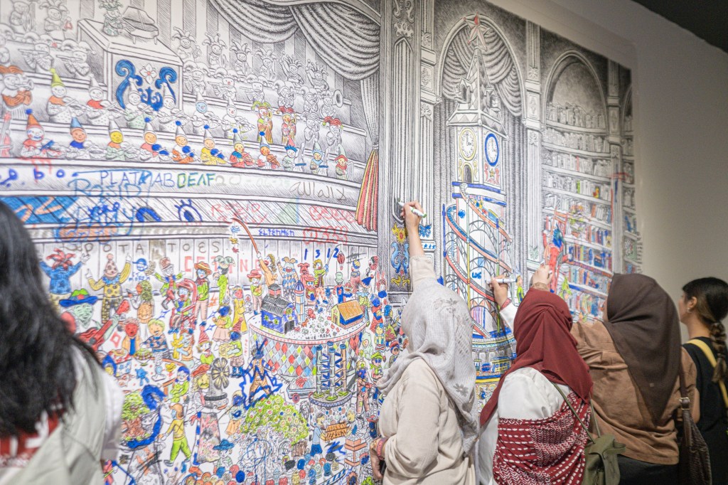 Melalui The Playroom, Darren Chandra, seorang penggambar penyandang Sindrom Asperger sejak usia tiga tahun, menyajikan karya interaktif. Salinan gambar aslinya (50 x 70 cm) diperbesar dan dipasang di dinding, berfungsi sebagai ruang bermain bagi para pengunjung. Dilengkapi kotak spidol warna, karya ini mengundang partisipasi aktif: pengunjung bisa mewarnai, bahkan menambahkan detail atau gambar jenaka. Ini merupakan perwujudan nyata dari visi Heri Pemad untuk menjadikan pengunjung bagian integral dari ARTJOG, melibatkan mereka secara langsung dengan karya yang dipamerkan.