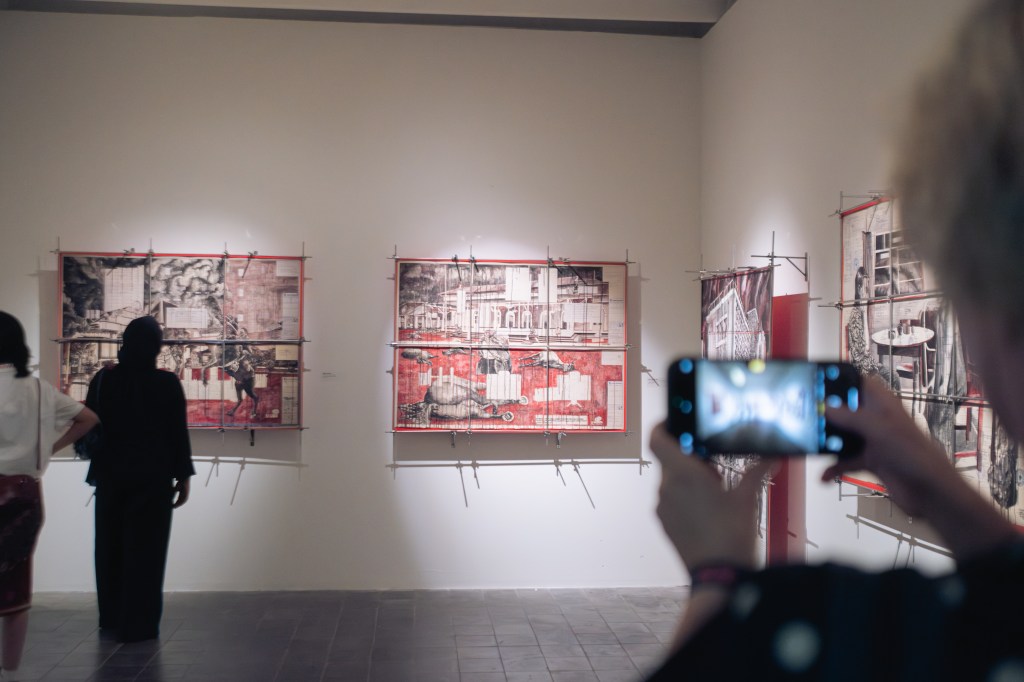 Hendro Wiyanto melanjutkan, “’Amalan’ tidak selalu terlihat langsung dalam suatu karya seni. Ia bisa jadi berbentuk dorongan imajinasi yang terbentuk dari menyaksikan atau mengalami karya, yang nantinya akan mendorong tindakan nyata.” Saat sambutan usai, saya belum sepenuhnya mengamini penjelasan konsep tersebut, sebab perhatian saya harus kembali pada ARTJOG di hadapan saya.